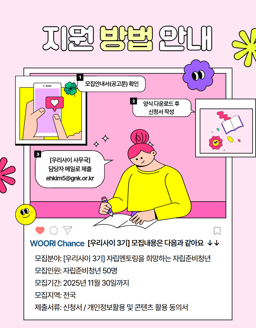 [자립준비청년 모집] 우리금융미래재단과 함께 하는 자립준비청년 사회적 지지체계 지원사업 WOORI Chance 멘토링 우리사이 3기