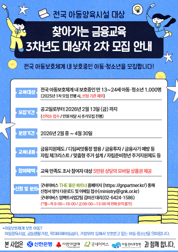 [전국 아동양육시설 대상 찾아가는 금융교육(3차년도) 대상자 2차 모집 안내]