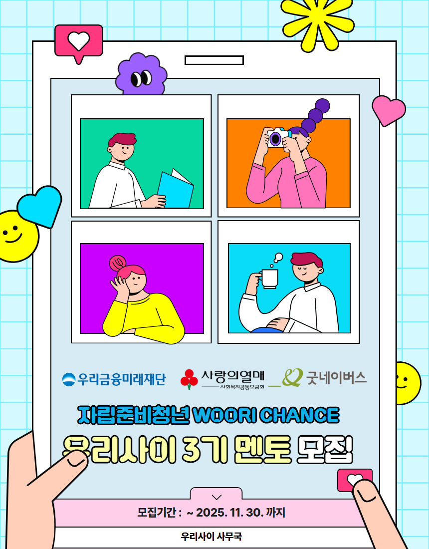 [자립준비청년 모집] 우리금융미래재단과 함께 하는 자립준비청년 사회적 지지체계 지원사업 WOORI Chance 멘토링 우리사이 3기