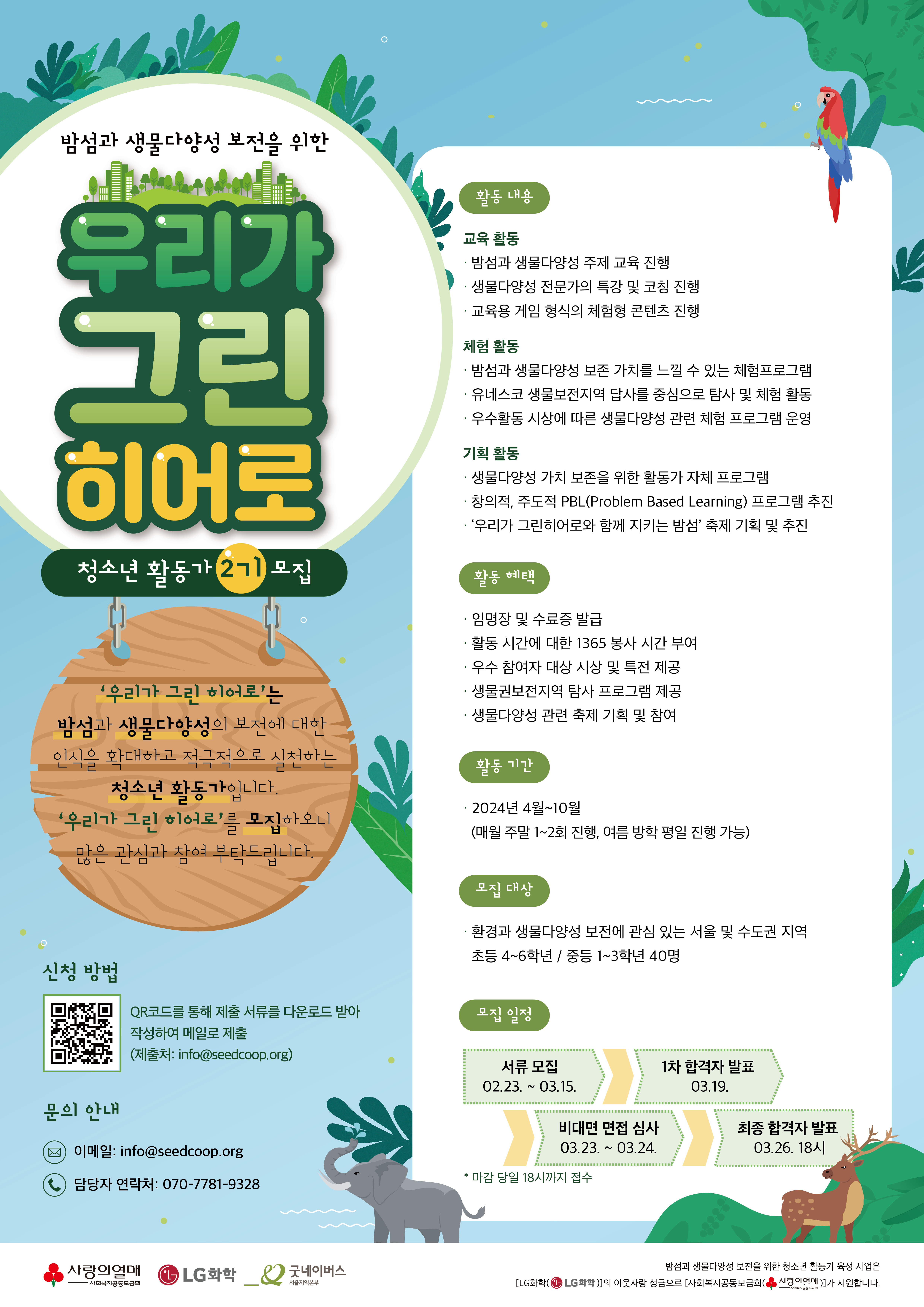 * 첨부 : 1. LG화학 생물 다양성 보존 '우리가 그린히어로' 2기 모집 웹포스터 1부.