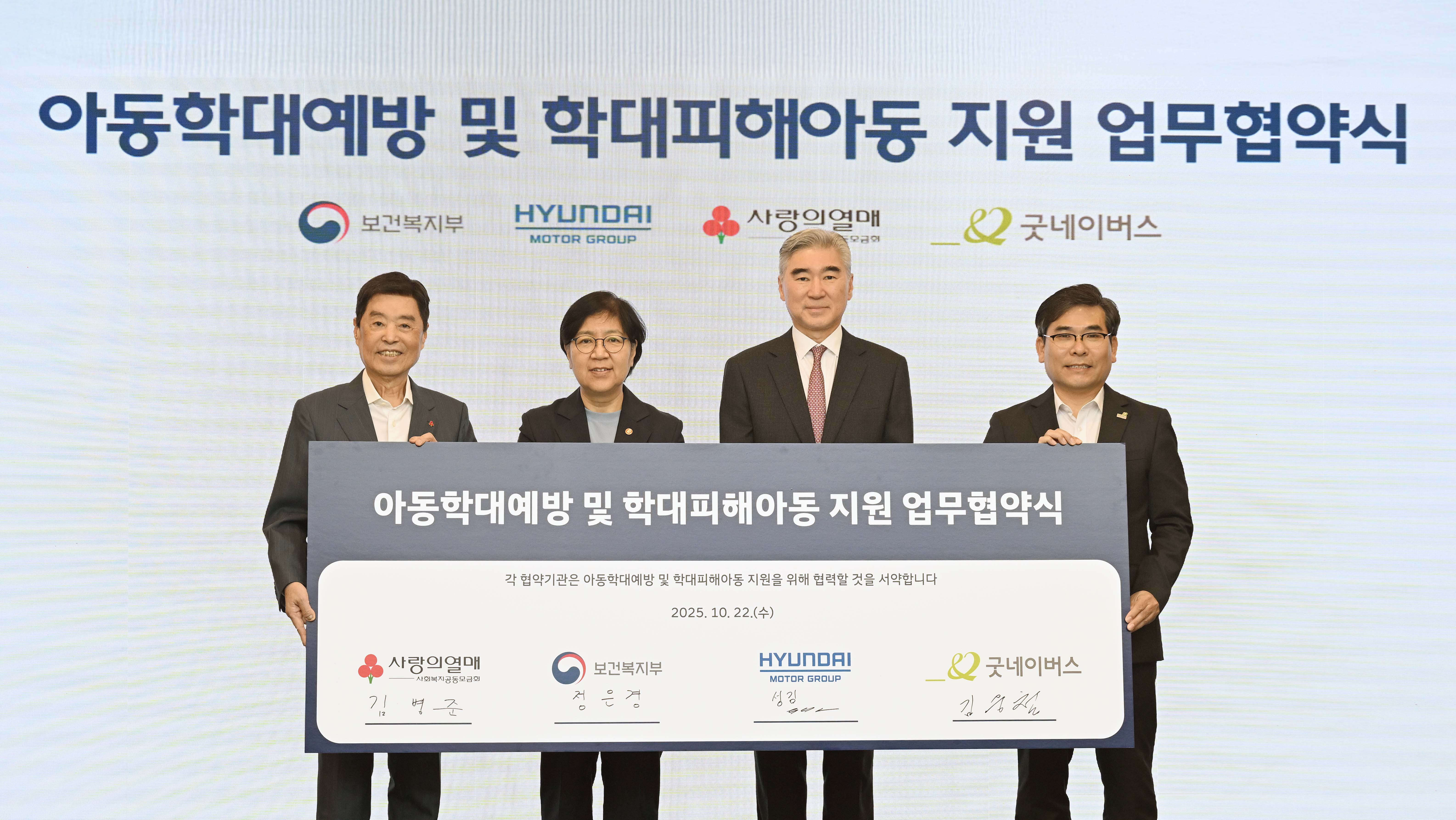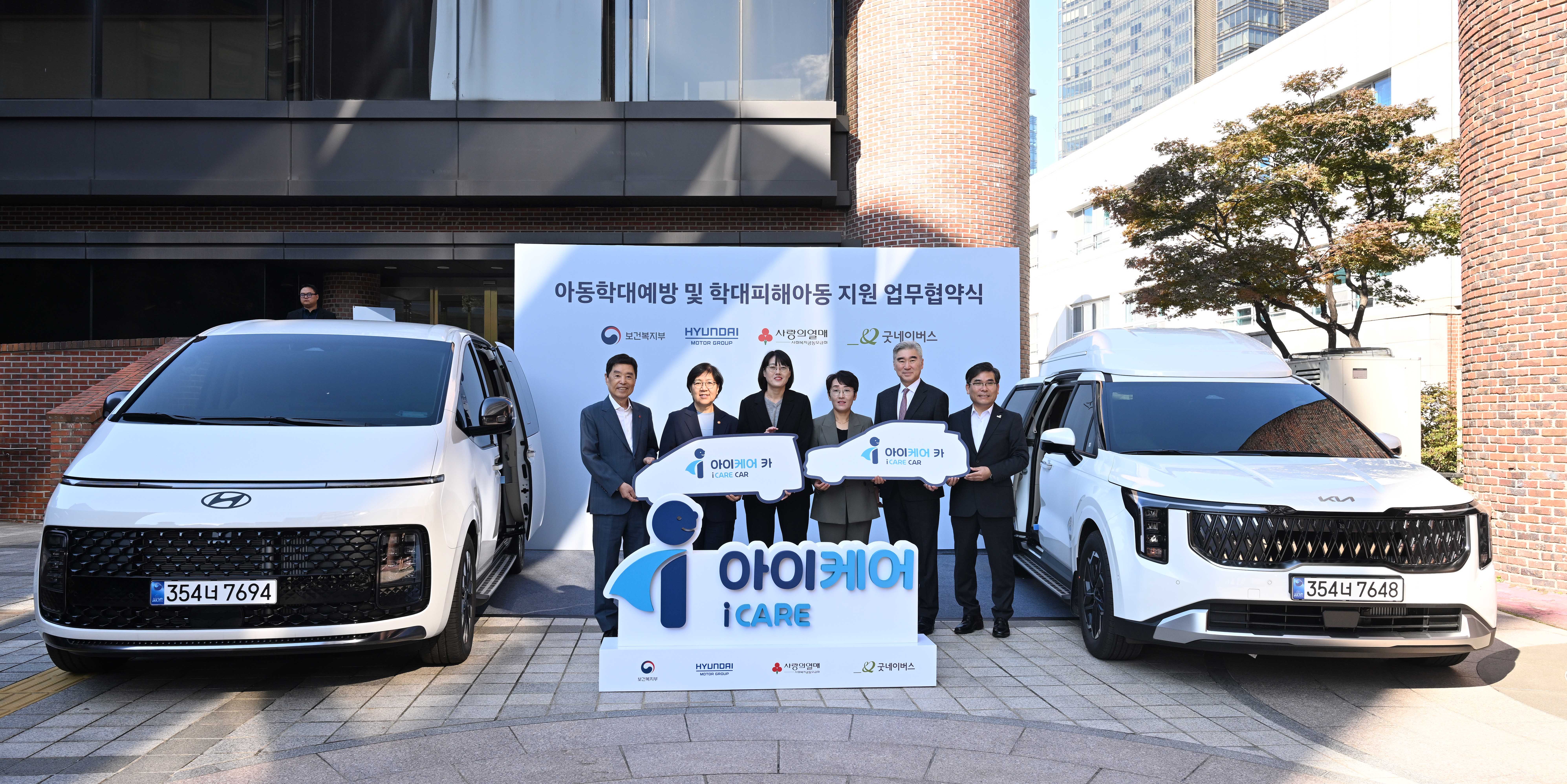 22일(수), 우리 단체는 사회복지공동모금회에서 보건복지부(장관 정은경), 현대자동차그룹(사장 성 김), 사회복지공동모금회(회장 김병준)와 함께 아동학대 예방 및 아동보호체계 강화를 위한 통합지원 사업인 ‘아이케어(i CARE)’ 업무협약을 체결 및 '아이케어 카(i CARE CAR)' 전달식을 진행했습니다.