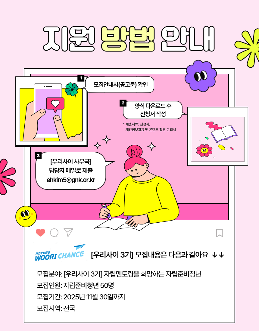 [자립준비청년 모집] 우리금융미래재단과 함께 하는 자립준비청년 사회적 지지체계 지원사업 WOORI Chance 멘토링 우리사이 3기