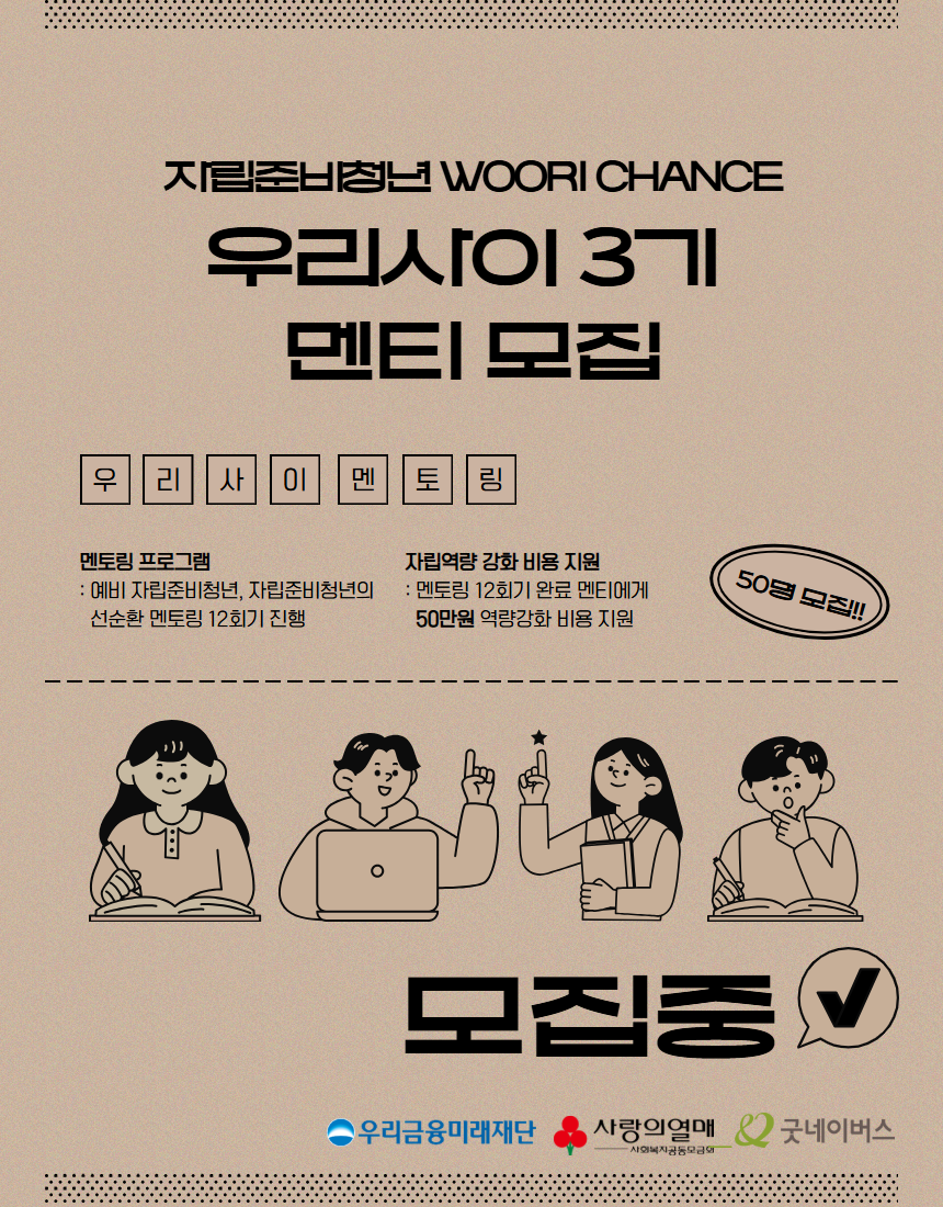 [예비자립준비청년 모집] WOORI Chance 멘토링 우리사이 3기