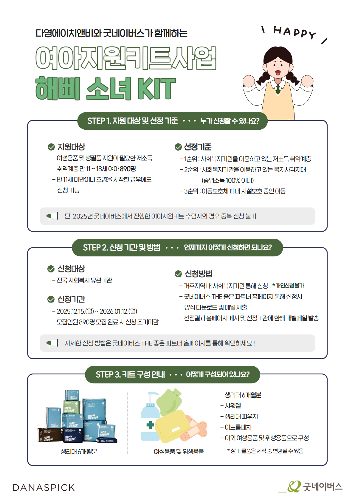[다영에이치앤비와 굿네이버스가 함께하는 여아지원키트사업 <해삐 소녀 KIT> 대상자 모집]